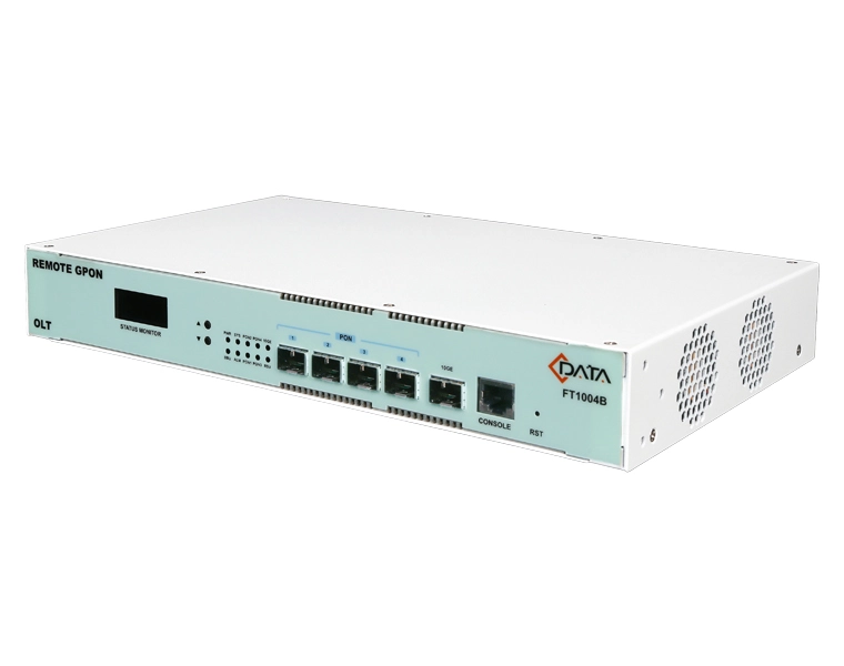 GPON OLT FT1004B completely meet relative standard of ITU G.984.x and FSAN, the device with 1*10 Gigabit uplink port and 4 GPON port. Each GPON port supports the splitting ratio of 1:128, The GPON system supports up to 512 terminal connections.
